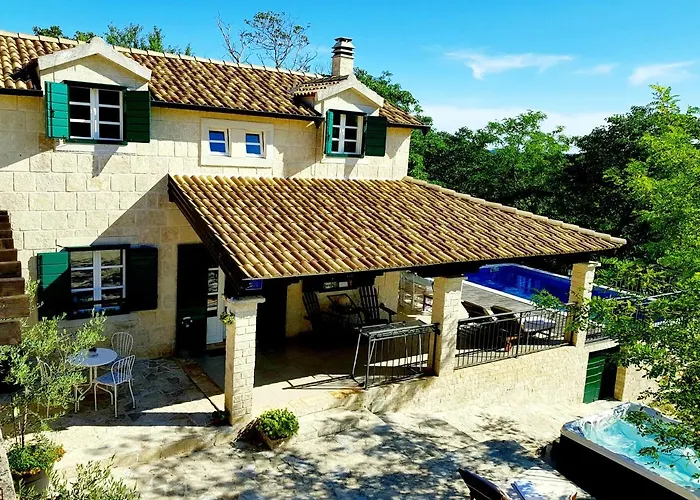 The 3-bedroom Villa Dvori Dida Mile, located a 15-minute ride from Kula Vrcevo, invites guests to relax in a Jacuzzi. Featuring a terrace, the villa is situated within 10 minutes' drive of Mala Bisaga.